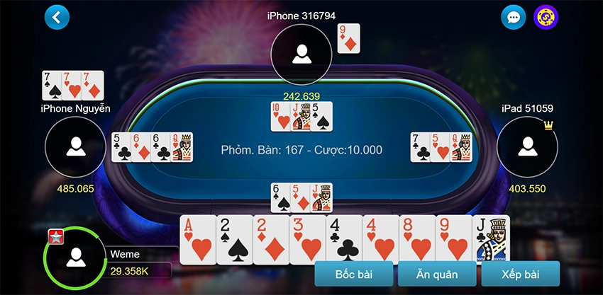 • Sắp xếp ngay từ đầu: Khi nhận bài, hãy sắp xếp theo chất hoặc giá trị để nhanh chóng xác định xem có thể tạo thành phỏm hay không.